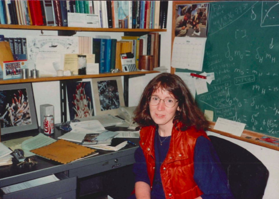 Young Van Dover in her office, note the framed photo of hydrothermal vents on her desk.